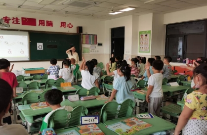 庄老师在教学中充分考虑到了孩子的身心特点。教学中,她带领孩子们做韵律操,做动作学拼音,听故事学拼音,让学生多种器官都参与到学习中来。学生学习认真,发言积极,学习效果很好。